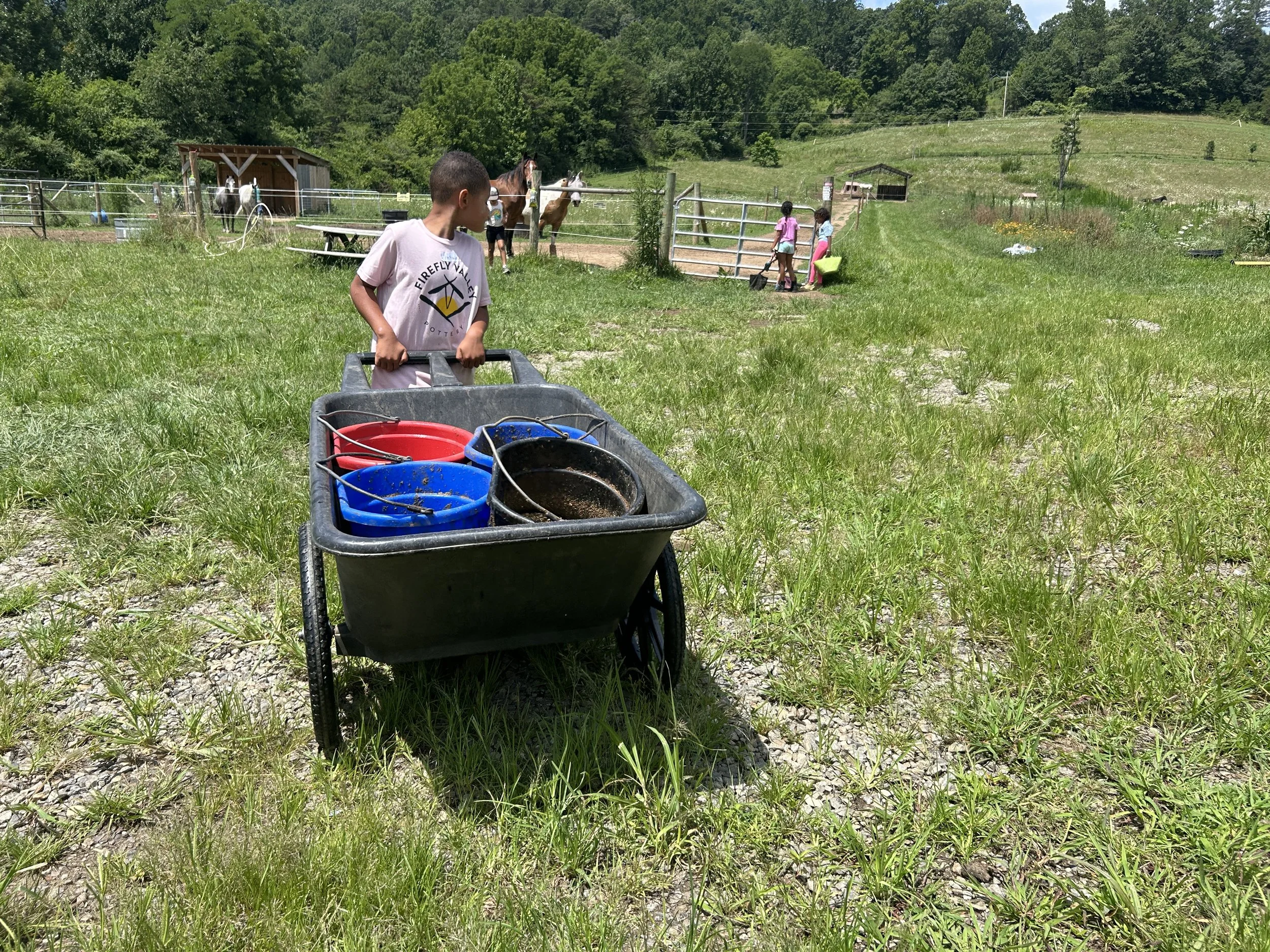 Each day will include a craft, an optional garden activity, optional horse time, lunch as a group and then a walk down to the creek for some water play.