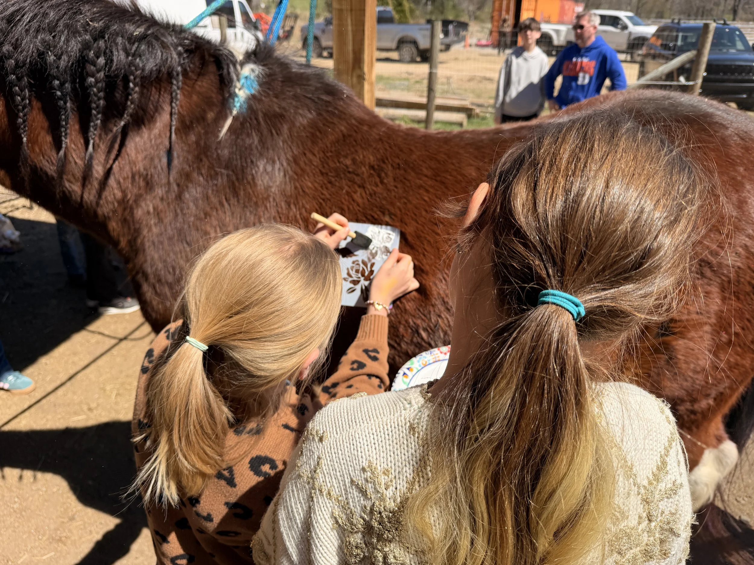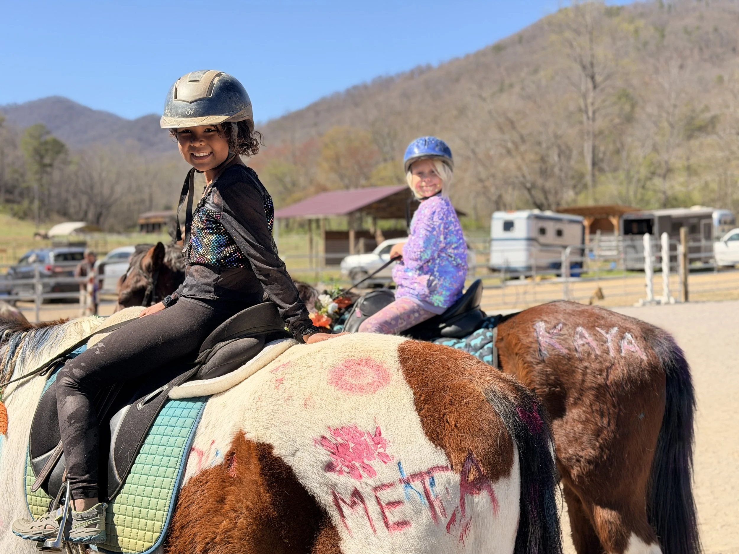 Pony Parties are 2 hours of pony time and include brushing, riding, treat making and a Photo Booth Picture with your Pony.